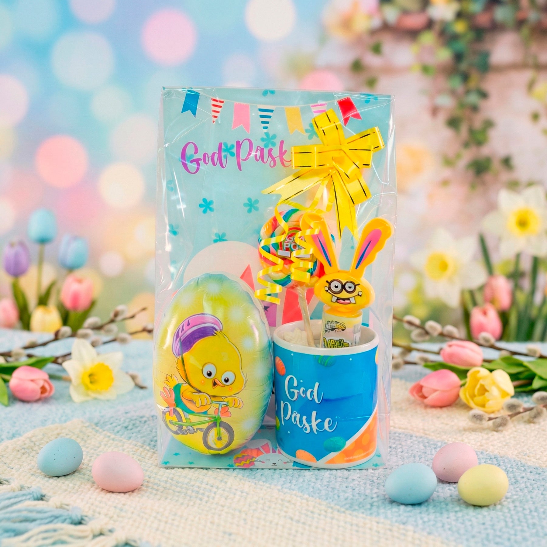 Overrask en gutt du er glad i med en fargerik og koselig påskepose fylt med gleder! Dette er ikke bare en pose med godteri, men en gjennomtenkt gave med en fin kombinasjon av noe som varer (en kopp han kan bruke igjen og igjen) og noe han kan kose seg med i påsken (påskeegg og godteri). Perfekt som en liten belønning under påskeeggjakt eller som en koselig overraskelse i ferien.
