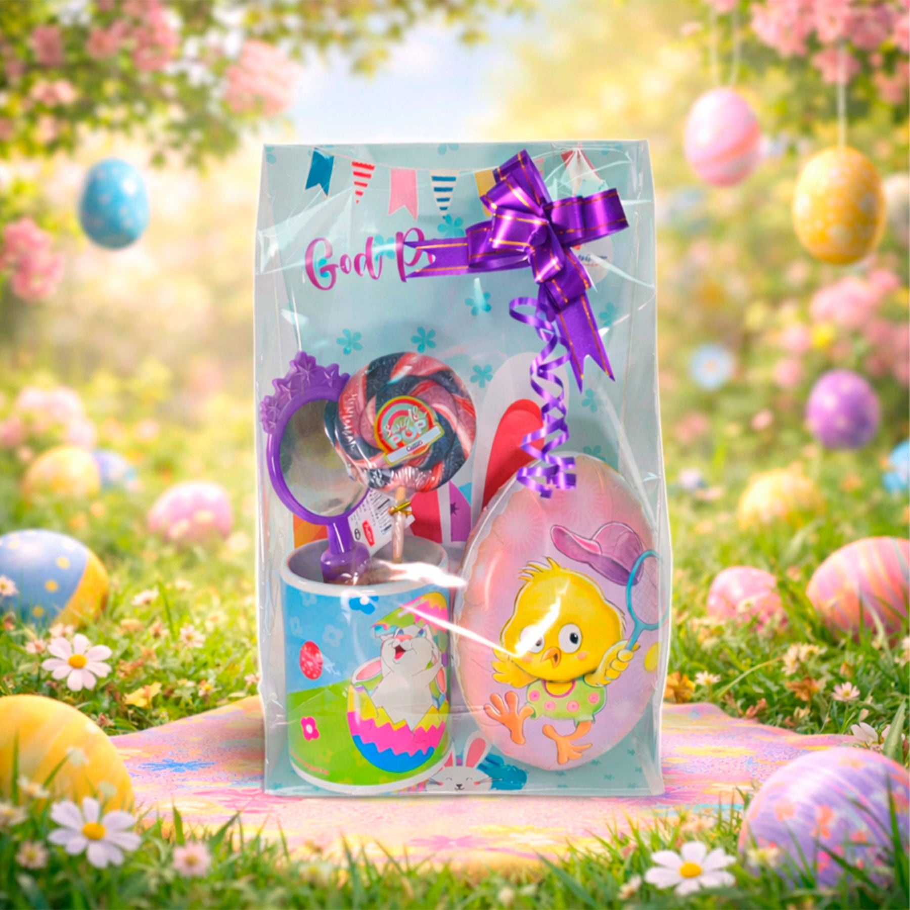 Overrask en jente du er glad i med en fargerik og koselig påskepose fylt med små gleder! Dette er ikke bare en pose med godteri, men en gjennomtenkt gave med en fin kombinasjon av noe som varer (en kopp hun kan bruke igjen og igjen) og noe hun kan kose seg med i påsken (påskeegg og godteri). Perfekt som en liten belønning under påskeeggjakt eller som en koselig overraskelse i ferien.